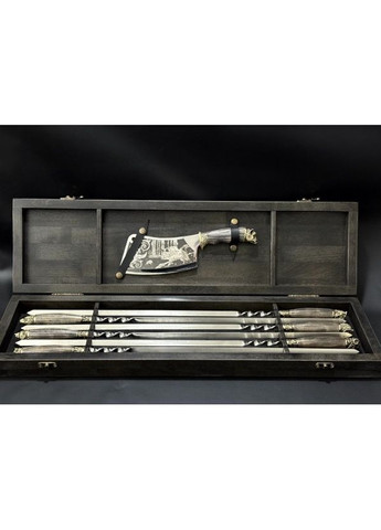 Идеальный подарок мужчине! Дополнительно можем нанести на коробку шашлыкового набора индивидуальную гравировку! Наносим хоть какой текст и логотип. Примеры Вы точно не прогадаете с выбором... Оригинальный, солидный и 100% необходим каждому мужчине. В комплекте набор для шашлыка и для поклонников гриля и барбекю Качественная деревянная коробка (не ДСП плита, как у многих), возможно индивидуальное гравирование (логотипы, инициалы, поздравления) В набор входит 43 комплекта!!!! : Качественная деревянная коробка (не ДСП плита, как у многих), трансформируется в стол. Удобная ручка из кожи, мягкая, комфортная и надежная Шампура из нержавеющей стали 6 шт. толщиной 3 мм, очень надежные, можно сказать вечные, деревянные лакированные ручки. Ширина: 12 мм. Длина 630 мм. Двойной шампур для овощей Двойной шампур для приготовления больших куриных ножек, больших кусков мяса, рыбы и овощей. нержавейка 3 мм Решетка-гриль для рыбы Раскладная мангал-рамка, у вас будет всегда с собой мангал Вилки 6 шт., теперь они всегда с собой) Вилка для снятия шашлыка и чистки шампуров толщиной 3 мм Штопор-открывалка Качественный шеф-нож Фонарик Турбо запальница дополнителем ножом в ручке и кресалом Тарелки из нержавеющей стали 6 шт. Карты пластиковые непромокаемые Фляга из нержавеющей стали с кожей Набор для соли и специй Стаканчики в чехле - 6 шт.