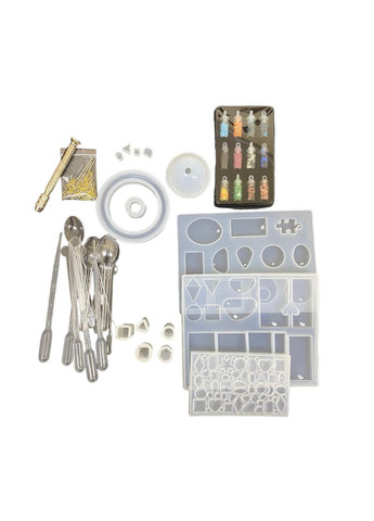 Формы молды для создания кулонов набор для эпоксидной смолы молды для создания бижутерии.Набор состоит из : - набор бутылочек с блестками разных форм 48 штук - держатель для сверел,ручная дрель - 2 сверла ( расположены в пакетике с держателями для кулонов ) - 50 шт винт с ушком, держатель для кулона цвет серебро - 50 шт винт с ушком, держатель для кулона цвет золото - 5 пластиковых пипеток - 4 длинных ложичек - 4 широкие ложечки - 1 форма мишка большой - 1 форма мишка маленький - 2 больших молда на 25 штук - 1 молд на 42 шт - 1 молд на 3 больших кристала - 1 молд на мелкие украшения 42 шт. - 1 молд на браслет - 5 молдов на длинный кулон в виде кристала - форма круг, квадрат,треугольник, ромб, шестигранник