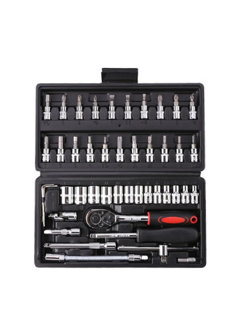 Профессиональный набор ручного инструмента 46 в 1 предназначен для ремонта бытовой и автомобильной техники. Удобная трещотка с быстрым сбросом, широкий выбор насадок, гибкие удлинители и ключи – всё это делает его идеальным выбором для дома, мастерской или автомобиля. Особенности: Надёжная трещотка с переключателем направления и функцией быстрого сброса Насадки из высококачественной хром-ванадиевой стали CR-V Увеличенный крутящий момент – до 50% выше по сравнению с углеродистой сталью Удлинители, переходники, шестигранники – всё в одном кейсе Устойчивое к ржавчине покрытие и эргономичная ручка Идеально подходит для работы с мелкими гайками, креплениями и домашним ремонтом Комплектация: 13 шестигранных торцевых головок 1/4": 4 / 4.5 / 5.5 / 6 / 7 / 9 / 10 / 11 / 12 / 14 мм 1 х универсальный шарнир 1/2" 1 х гибкий удлинитель 1/4" 2 х жёстких удлинителя 1/4" (50 мм, 100 мм) 3 х Г-образных шестигранника: 1.5 / 2 / 2.5 мм 1 х скользящая рукоятка 1/2" 1 х переходник с квадратом 1/4" 1 х трещотка с быстрым сбросом 1/4" 1 х удобный пластиковый кейс Биты: TORX: T10 / T15 / T20 / T25 / T30 / T40 HEX: H3 / H4 / H5 / H6 / H7 / H8 Шлиц: S4 / S5.5 / S7 Крест: PH1 / PH2 / PH3 Pozidriv: PZ1 / PZ2 / PZ3 Материал: Хром-ванадиевая сталь (CR-V) Вес: ~1.2 кг Цвет кейса: Чёрный/Серый Количество предметов: 46
