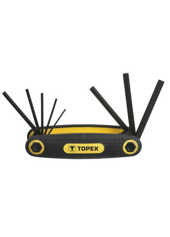 Набор шестигранных ключей Topex (1.5-6 мм, 8 шт) шестигранники Ключи шестигранные TOPEX размеры 1.5 - 6 мм, изготовлены из прочной хромомолибденовой стали, обеспечивающей долгий срок службы инструмента. Пластмассовая рукоятка покрыта антискользящим материалом, что обеспечивает комфорт работы. Благодаря практичной конструкции рукоятки, спрятанные в нее ключи всегда будут в комплекте и под рукой у каждого домашнего мастера. Бренд TOPEX предназначен для домашних мастеров. Комплект поставки: Шестигранный ключ Topex 1.5 мм - 1 штШестигранный ключ Topex 2 мм - 1 штШестигранный ключ Topex 2.5 мм - 1 штШестигранный ключ Topex 3 мм - 1 штШестигранный ключ Topex 4 мм - 1 штШестигранный ключ Topex 5 мм - 1 штШестигранный ключ Topex 5.5 мм - 1 штШестигранный ключ Topex 6 мм - 1 шт