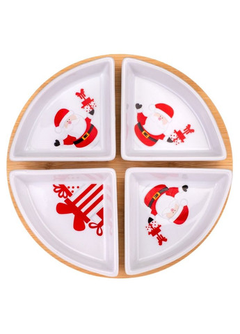 Набор пиал Elisey "Заботливый Санта" на бамбуковой подставке (6020-007) Описание Создайте праздничное настроение на вашем столе с набором пиал "Заботливый Санта" от Elisey. Этот волшебный набор идеально подходит для сервировки закусок, соусов, орехов, сухофруктов или небольших десертов к новогоднему и рождественскому столу. Он сочетает в себе практичность и праздничный, тематический дизайн. Набор состоит из четырех керамических пиалов, которые имеют форму сегментов круга и вместе образуют идеальную композицию на круглой бамбуковой подставке. Каждая пиала украшена яркими красно-белыми рисунками с изображением Санты Клауса и подарков, что делает сервировку веселой и праздничной. Бамбуковая подставка защищает стол от царапин, добавляет природное тепло и упрощает перенос пиал. Основные характеристики Бренд: Elisey Модель: 6020-007 Тип: Набор для сервировки / Менажница Дизайн: "Заботливый Санта" Материал пиал: Керамика Материал подставки: Бамбук Количество предметов: 5 (4 пиалы и 1 подставка) Общая ширина (диаметр): 21,5 см Высота набора: 21,5 см Высота набора: 21,5 см Сантой и подарками создают идеальную новогоднюю атмосферу. Функциональность: Идеально подходит для раздельной подачи закусок, что позволяет избежать смешивания вкусов. Качественные материалы: Прочная керамика для пиалов и экологически чистый бамбук для подставки. Удобство: Керамические пиалы легко снимаются для мытья, а бамбуковая подставка придает устойчивость. Универсальность: Отличный подарок в канун новогодних праздников. Рекомендации по уходу Керамические пиалы можно мыть вручную или в посудомоечной машине. Бамбуковую подставку рекомендуется протирать влажной тряпкой и сразу вытирать насухо. Не оставляйте надолго бамбук в воде. Почему стоит купить? Ищете идеальную посуду для праздничного стола? Набор пиал "Заботливый Санта" - это то, что вам нужно! Он сочетает в себе красоту, удобство и тематический настрой. Закажите сейчас, чтобы сделать вашу новогоднюю сервировку стола незабываемым!