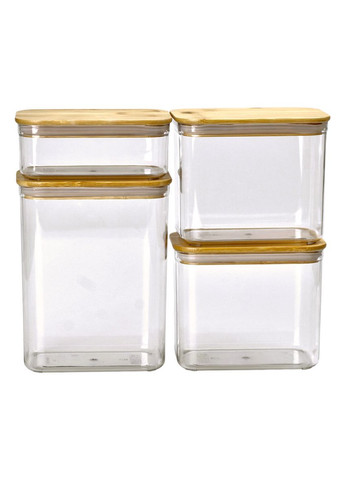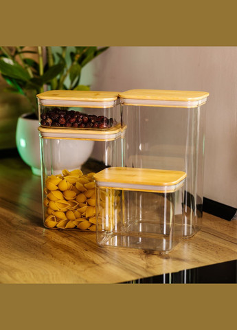 Набор емкостей для хранения продуктов - это практичное и стильное решение для организации кухонного пространства. Каждая емкость изготовлена из высококачественного прозрачного пластика, что позволяет легко видеть содержимое, обеспечивая удобство в пользовании. Благодаря современному дизайну, эти контейнеры гармонично вписываются в любой интерьер кухни. Основные характеристики: Количество емкостей: 4 штук; Объем емкостей: 0.75 л | 1.7 л | 2.7 л | 3.7 л; Высота емкостей: 6.5 см | 13.5 см | 20.5 см | 27.5 см; Материал: прозрачный пластик; Крышки: бамбуковые с силиконовыми уплотнителями. Особенностью набора являются бамбуковые крышки, придающие емкостям натуральный и экологичный вид. Крышки оснащены силиконовыми уплотнителями, которые обеспечивают герметичность, сохраняя свежесть продуктов на долгое время. Емкости идеально подходят для хранения круп, специй, орехов, сухофруктов или других продуктов, а также предотвращают попадание влаги или посторонних запахов. Благодаря четырем емкостям разного объема, этот набор позволяет максимально организовать хранение, упорядочивая все необходимые ингредиенты. Простота ухода за контейнерами делает их удобными в использовании, а их стильный вид дополнит вашу кухню функциональностью и эстетикой. Особенности и преимущества: Качество: Товар изготовлен из материалов, отвечающих современным стандартам качества, что гарантирует его высокую прочность и долговечность в использовании. Удобство: Легкий в использовании и уходе, идеальный для ежедневного использования, обеспечивая комфорт в любой ситуации. Стиль: Современный дизайн и элегантный вид, подходящий к любому интерьеру или