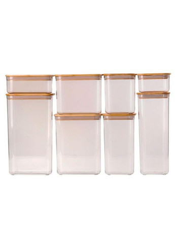 Набор банок для сыпучих продуктов 8 штук с бамбуковой крышкой Набор емкостей для хранения сыпучих продуктов — это идеальное решение для тех, кто ценит порядок, практичность и стиль на своей кухне. Каждая из восьми банок в комплекте обладает различным объемом и идеально подходит для хранения круп, орехов, специй, сухофруктов и других продуктов. С прозрачными стенками из высококачественного пластика легко увидеть содержимое, что позволяет быстро и удобно находить необходимые ингредиенты. Современный дизайн и бамбуковые крышки придают набору натуральный и экологичный вид, что органично вписывается в любой интерьер. Крышки оснащены силиконовыми уплотнителями, которые обеспечивают герметичность и сохраняют свежесть продуктов надолго, предотвращая проникновение влаги и посторонних запахов. Это делает набор незаменимым помощником на кухне для тех, кто ценит удобство, долговечность и стиль. Дополнительные особенности и преимущества: 8 емкостей разного объема: от 0.5 л до 3.7 л, что позволяет удобно распределять продукты по категориям. Прозрачные стенки: легко контролировать количество и состояние продуктов. Бамбуковые крышки с силиконовыми уплотнителями: герметичность и защита от влаги и запахов. Эстетичный дизайн: гармонично вписывается в любой интерьер кухни. Удобство в использовании: простота ухода и долговечность материалов. Экологичность: натуральный бамбук придает контейнерам натуральный, стильный вид. Характеристики: Количество емкостей: 8 штук. Объем емкостей: 3.7 л | 2.7 л | 2.4 л | 1.8 л | 1.7 л | 1.2 л | 0.75 л | 0.5 л. Высота емкостей: 2 по 27.5 см | 2 по 20.5 см | 2 по 13.5 см | 2 по 6.5 см. Материал емкостей: прозрачный пластик. Материал крышки: бамбук с силиконовыми уплотнителями. Набор банок с бамбуковыми крышками — это не просто емкости для хранения продуктов, но и стильный элемент вашей кухни. Он решает сразу несколько задач: помогает поддерживать порядок, сохраняет свежесть продуктов и придает кухонному пространству органичный, натуральный вид. Этот набор — отличный выбор для тех, кто ценит удобство и функциональность в повседневной жизни.