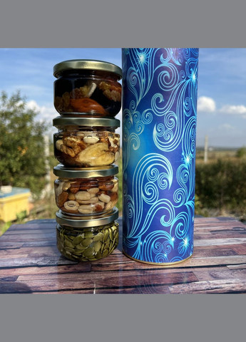 Дегустационный мини набор крем-медов №3 (600 граммов) «Дегустационный мини набор крем-медов №3» – это уже наш третий набор новых вкусов совершенно отличающихся от двух предыдущих. Так же, как и его предшественники, он сочетает в себе разноцветные, насыщенные и изящные вкусы собраны в одной небольшой коробочке. Нежный, почти воздушный, приятный по вкусу сбитый медовый мусс, прекрасно гармонирует с приятными вкусами и ароматами натуральных сублимированных ягод. Каждый вкус неповторим, и хотим отметить, что именно благодаря двойной концентрации сублимированных ягод в нашем крем-меде мы смогли практически полностью вытеснить слишком сладкий вкус меда и прекрасно сбалансировать каждый из представленных вкусов. Набор состоит из шести маленьких, герметично упакованных, пластиковых баночек по 100 граммов каждая (хотим признаться, что вес любой баночки в нашем магазине всегда немного больше, чем указано на этикетке☺). В набор входят: - крем-мед «Мохито» (мятное); - крем-мед «Арония» (рябина черноплодная); - крем-мед «Вишня»; - крем-мед «Чёрная смородина»; - крем-мед «Кизил»; - крем-мед «Маракуйя» Невероятный вкус, цвет и аромат наших крем-медов создается благодаря использованию только натуральных и природных компонентов, без добавления любых консервантов, красителей, сахара, глютена или ГМО. Наш крем-мед состоит только из двух натуральных продуктов: меда разнотравья – 93% на 100 грамм готового продукта (сбитого по соответствующей технологии до консистенции нежного, воздушного, пастообразного крема, который больше никогда не кристаллизуется) и натуральных, мелко смолотых сублимированных ягод – 7 % на 100 грамм готового продукта (обработанных по современным технологиям: быстрой заморозки, создания вакуума, повышенной температуры и испарения). Соотношение сублимированных ягод к свежим составляет 1 к 4,5 – 16 граммам, то есть от четырех с половиной до шестнадцати раз больше насыщенного вкуса и пользы, чем в обычных сухофруктах. То есть в 100 граммах наших десертов, по соотношению, содержится от 31,5 грамм и до 112 грамм свежих ягод. Невероятно вкусный и полезный витаминный коктейль! Хотим добавить, что при правильном хранении наш крем-мед никогда не испортится, поскольку как вы и сами знаете, мед сам по себе является идеальным природным консервантом, конечно, при условии, что он был правильно собран, и хранился в надлежащих условиях. А так, как мы, в наших десертах используем только сублимированные ягоды, в которых практически полностью отсутствует влага, то вероятность того, что созданный десерт испортится, потеряет свой вкус или пользу – равна нулю. На сегодняшний день согласно официальному законодательному документу Украины ДСТУ 4497: 2005 условия и срок хранения натурального меда осуществляется согласно п. 12.3 – срок годности для употребления продукта составляет – 2 года со дня изготовления (а в идеальных условиях хранения, как это уже было не однократно) доказано историческими находками – от 8 месяцев до бесконечности). Соответственно наш крем-мед может храниться достаточно долгое время, поэтому берите наш «Дегустационный мини набор крем-медов № 3», пробуйте, дегустируйте, угощайте родных и близкий, или презентуйте друзьям в качестве нестандартного подарка, выбирайте именно тот вкус, который вам будет доставлять наибольшее удовольствие и не бояс