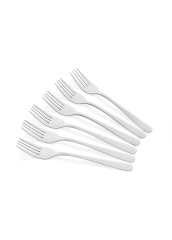 Набор стильных столовых вилок отлично подойдет для вашей кухни. Набор столовых вилок – 6 штук. Вилки столовые изготовлены из высококачественной нержавеющей стали, очень прочные, не гнутся, имеют длительный срок службы, отлично сохраняют эксплуатационные свойства и внешний вид. Качественная полировка обеспечивает высокий уровень гигиеничности приборов. Приборы из нержавеющей стали отличаются высокими антикоррозионными свойствами и значительной стойкостью к действию кислот и щелочей. Такая сталь не изменяет вкус и цвет пищи, не выделяет вредных веществ. Вилки столовые набор, отлично подходят для сервировки стола как в домашнем обиходе, так и в профессиональных заведениях – кафе, ресторанах. Глянцевая отделка. Можно мыть каждый день в посудомоечной машине.