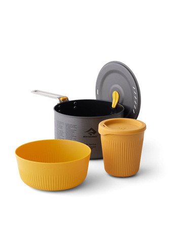 Набор Frontier Ultralight One Pot Cookset включает в себя кастрюлю Frontier 1,3 л, миску и чашку Passage Collection с эргономичным дизайном. Легкий и функциональный набор для походной кухни. Кастрюля Frontier изготовлена из высококачественного анодированного алюминиевого сплава для эффективной передачи тепла, имеет керамическое антипригарное покрытие, продуманные процеживающие отверстия воды в крышке и фиксатор LidKeep, который позволяет закрепить крышку на боковой стенке кастрюли. Ручка Click-Safe обеспечивает надежный хват, ручку можно перевернуть, чтобы хранить весь набор вместе. Особенности Набор включает в себя: кастрюля 1,3 л, 1 миска, 1 чашка Кастрюля Frontier объемом 1,3 л изготовлена из анодированного алюминиевого сплава для отличной теплопередачи и керамического антипригарного покрытия для легкого приготовления пищи и мойки. Съемная ручка Click-Safe обеспечивает безопасное использование и может быть обращена, чтобы удерживать крышку, миску и кружку внутри Крышка имеет удобную ручку и силиконовую резиновую накладку LidKeep. Миски и чашки изготовлены из пищевого полипропилена, армированного стекловолокном, легко моются, можно использовать в микроволновке и мыть в посудомоечной машине. Миски и чашки имеют боковые стенки Cool-Grip, позволяющие безопасно держать миску, независимо от того, насколько горячим или холодным содержимое внутри Изгиб между боковыми стенками и дном миски Passage идеально подходит для любых ложек и вилок Sea to Summit, чтобы вы могли наслаждаться каждым кусочком пищи. Характеристики Вес кастрюли: 208 г Размер в сложенном виде: 15.6 x 14.5 x 9.9 см Объем кастрюли: 1.3 л Вес набора: 337 г Материал: Алюминиевый сплав с твердым анодированием, пищевой полипропилен, армированный стекловолокном.