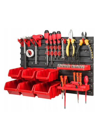 Панель инструментов 230,0*78,0 см + 46 контейнеров – незаменимая вещь в мастерской, на СТО, гараже, подсобном помещении, автосервисе, амбаре. Панели (органайзеры) для инструментов являются эффективным способом организации места, позволяет держать порядок в инструментах и мелких аксессуарах. Выдерживает большие нагрузки и не прогибается. Весь набор мобильный, раскладной, все элементы фиксируется в любом порядке, по вашему желанию. Комплект состоит из: - 8 панелей KBB6040 58,0*39,0 см. Общая площадь 230,0*78,0 см. - 2 полки KBS60-3020 58,0*16,0*7,0 см; - 2 полки KBSS40-3020 38,4*11,0*5,0 см; - 4 комплекта держателей KBH20-3020 (16 держателей для рожковых ключей ((8 вертикальных, 8 горизонтальных); 32 держателя для отверток, мелких инструментов; 16 крючков 5,5 см, 16 крючков 3,5 см); - 28 контейнеров KTR 115,0*8,0*6,0 см; -18 контейнеров KTR20-3020 195,0*12,0*9,0 см. Вес панели инструментов-10 кг, габариты в разделенном виде 60*40*30 см. Характеристика: Простая система крепления – для крепления к стене нужны саморезы, болты или анкеры, в зависимости от структуры стены (дерево, бетон, металл). Модульность – панели можно соединить, создавая таким образом систему, которая идеально подходит Вам. Перфорация – это особые вставки, которые позволяют быстро монтировать крючки, держатели и контейнеры. Термостойкость – панели устойчивы к температуре от -20 до 100 градусов по Цельсию. Химическая выносливость – панели, изготовленные из полипропилена, устойчивой к растворам солей, кислот, щелочей, спиртам, жирам, маслам, сложным эфирам, кетонам. Производитель – Польша.