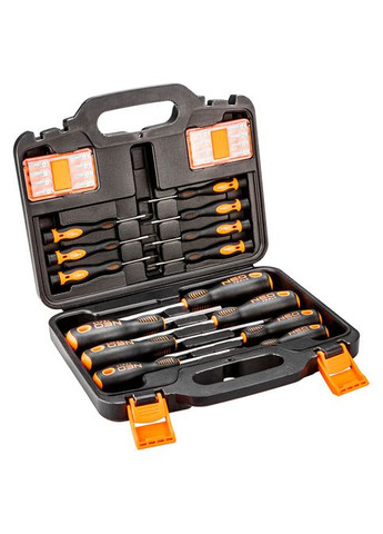 Набор отверток MASTERTOOL При проведении мелких и точных работ с крепежными деталями и элементами, пользуются специальным типом отверток, который называется прецизионной отверткой. Это отвертка с особо точным наконечником, которая заточена под максимальное соответствие с мелкими головками винтов и прочих соединительных деталей. Данный вид отвертки используется при сборке или разборке устройств и компонентов небольшого размера – мелкой домашней техники, разнообразных гаджетов, например, часов или мобильных телефонов, фотоаппаратов и портативных компьютеров, ноутбуков, планшетов, игровых приставок и прочих видов техники. Этот набор, благодаря своей универсальности, будет востребован как в мастерской, так и в домашних условиях. Изготовлен из хром-ванадиевой стали, характеризующейся стойкостью к высоким нагрузкам, износу, повреждениям и деформации. Набор поставляется в пластиковом кейсе. Описание: хром-ванадиевая сталь Cr-V 20 отверточных насадок 28 мм: SL1 / SL1,5 / SL2 / SL2,5 / SL3 / SL3,5 / SL4 / PH000 / PH00 / PH0 / PH1 / PZ0 / PZ1 / T4 / T5 / T6 / T7 / T8 / T9 / T10 держатель щипцы прямые пинцет размер 0.22x0.11x0.04 м вес 0.375 кг MASTERTOOL - один из самых известных украинских брендов инструмента. Деятельность компании стартовала с 1991 года и на сегодняшний момент в любом регионе Украины можно получить инструмент и оборудование для ремонтно-строительных работ этой марки. Отличительная положительная черта инструмента MASTERTOOL - соотношение цена-качество. При достойном качестве материала изготовления и удобной комплектации, инструмент сопровождает небольшая стоимость.