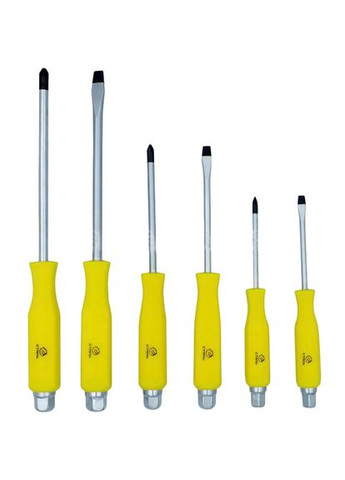 Информация о наборе "Отвертки ударные MASTERTOOL GM EXTERNAL HEX набор 4 шт PH2х100/PH3х150/SL6х100/SL8х150 (40-1154)" включает в себя следующие характеристики и комплектацию: Характеристики: Материал: Отвертки изготовлены из хром-ванадиевой стали (Cr-V), что обеспечивает прочность и долговечность инструментов. Намагниченный наконечник: Наконечник отверток намагничен, что помогает удерживать винты и предотвращать их падение при работе. Ударная площадка: Отвертки ударные, что делает их подходящими для использования с инструментами, где требуется применение ударной силы. Это может быть полезно при работе с тугими винтами или гаек. Шестигранный стержень: Отвертки имеют шестигранный стержень, который обеспечивает надежное сцепление с винтами и предотвращает скольжение. Внешний шестигранник: Отвертки оборудованы внешним шестигранником, который облегчает их использование и позволяет применять дополнительные усилия при необходимости. Комплектация: Набор отверток включает в себя следующие размеры и типы: - PH2х100 мм: Отвертка с крестообразным (Phillips) наконечником размера PH2 и длиной 100 мм. - PH3х150 мм: Отвертка с крестообразным (Phillips) наконечником размера PH3 и длиной 150 мм. - SL6х100 мм: Отвертка с плоским (прямым) наконечником размером 6 мм и длиной 100 мм. - SL8х150 мм: Отвертка с плоским (прямым) наконечником размером 8 мм и длиной 150 мм. Этот набор отверток предназначен для различных видов работы, включая монтаж, ремонт и другие задачи, где требуется использование отверток. Они оснащены ударной площадкой и намагниченным наконечником для улучшения удобства использования. MASTERTOOL - один из самых известных украинских брендов инструмента. Деятельность компании стартовала с 1991 года и на сегодняшний момент в любом регионе Украины можно получить инструмент и оборудование для ремонтно-строительных работ этой марки. Отличительная положительная черта инструмента MASTERTOOL - соотношение цена-качество. При достойном качестве материала изготовления и удобной комплектации, инструмент сопровождает небольшая стоимость.