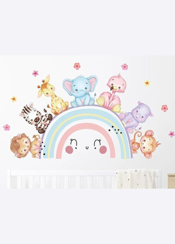 Виниловые наклейки в детскую на стену, окна, шкафы " радуга, звери" Приблизительный размер после наклеивания 53см*84см лист, который Вы получите, имеет размер 40см*90см