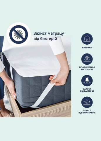 Защитный наматрасник AQUA-STOP 90×200 см IDEIA – непромокаемый, хлопковый, с резинками по углам Идеальная защита для матрасов в гостиницах, SPA, салонах и дома! Водонепроницаемый наматрасник AQUA-STOP от ТМ IDEIA – это современное и практичное решение для защиты матрасов от влаги, загрязнений и механических повреждений. Комфортный, дышащий и гипоаллергенный, он продлит срок службы вашего матраса, сохраняя его в первозданной чистоте. 🌟 Основные характеристики: ✔ Размер: 90×200 см – стандартный размер односпального матраса. ✔ Двухслойная структура: 🔹 Верхний слой: махровое волокно (100% хлопок) – мягкий, приятный на ощупь. 🔹 Нижний слой: водонепроницаемая мембрана – эффективно защищает от влаги и загрязнений. ✔ Дышащая ткань – обеспечивает естественную циркуляцию воздуха и комфорт во время сна. ✔ Эластичные крепления по углам – надежно фиксируют наматрасник, предотвращая его смещение. ✔ Гипоаллергенные свойства – подходит для людей с чувствительной кожей. ✔ Произведено в Украине 🇺🇦 – европейское качество по доступной цене. 🛡 Преимущества наматрасника AQUA-STOP: ✅ 100% защита от влаги и загрязнений – идеально для гостиниц, SPA, салонов, лечебных учреждений и домашнего использования. ✅ Гипоаллергенный состав – не вызывает раздражений, не накапливает пыль и бактерии. ✅ Легкость в уходе – можно стирать при температуре до 90°C, быстро сохнет. ✅ Долговечность – сохраняет защитные и эстетические свойства даже после многократных стирок. ✅ Удобство в использовании – легко надевается и снимается благодаря эластичным резинкам. 📌 Рекомендации по уходу: 🔹 Стирать при температуре до 90°C 🔹 Не использовать агрессивные моющие средства и отбеливатели 🔹 Сушить в естественных условиях, избегая перегрева 🎁 AQUA-STOP – надежная защита вашего матраса и комфорт для ваших гостей!