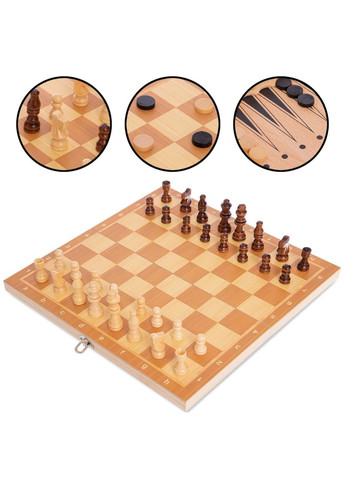 Материал: дерево, метал. Размер доски: 35x35 см. Назначение: для любителей поиграть на свежем воздухе или в дороге. Вы любите играть в шашки, шахматы и нарды, но вам не нравится, когда они хранятся в разных коробках и загромождают пространство? Отличным решением в такой ситуации будет набор 3 в 1 W3517 – шахматы, шашки, нарды деревянные. Его можно купить в интернет-магазине «Планета Спорт» как оптом, так и в розде. Назначение Шахматы, шашки и нарды, собранные в этом наборе, вполне заслуженно относятся к самым популярным настольным играм. Ведь, кроме того, что в них интересно играть, каждая из них оказывает благотворное влияние на работу мозга. Они учат мыслить стратегически, анализировать свои действия, улучшают навыки устного счета, а вместе это развивает память и гибкость мышления. Набор подходит как начинающим игрокам, так и опытным, при этом он может использоваться и дома, и, поскольку он достаточно компактный, во время поездок. Описание Набор состоит из коробки для хранения фигур, которая изготовлена из качественной древесины. Внешне она является стандартной шахматницей (8 на 8 клеток), а изнутри – ndash; игровое поле для нардов. Чтобы коробка случайно не открылась, она оснащена надежными замками. Для изготовления шахматных фигур и шашек также используется древесина – светлая для белых и темная для черных. Все деревянные элементы набора покрыты бесцветным лаком, который защищает их от влаги, но не скрывает текстуру дерева. В набор также входят пластиковые игральные кости. Преимущества: Благодаря высокому качеству изготовления набор имеет привлекательный внешний вид. Что касается компактного он занимает немного места при хранении. Качество и эстетичность набора отлично сочетаются с его доступной стоимостью. Набор 3 в 1 W3517 – шахматы, шашки, нарды деревянные – обеспечивает рациональное хранение сразу трех замечательных игр и предоставляет вам возможность в любой момент сыграть в любую из них. Заказывайте, и вам его доставят в любой город Украины!