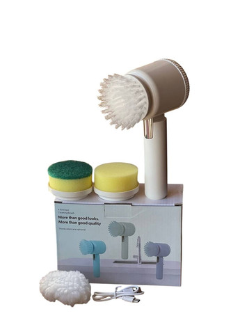 Электрическая щетка для уборки Magic Brush 5 в 1 Электрическая щетка для чистки Magic Brush, работающая от батареек, поможет очистить кафельную плитку, кухонную раковину, ванную и другие поверхности. В комплект к электрощетке добавляются дополнительные насадки (мягкая губка и полирующая губка), а также крючок для хранения устройства. С помощью щетки для чистки Золушка Вы удалите с поверхностей въевшиеся разводы, стойкие пятна, придадите ей блеск и идеальную чистоту. Комплектация: основное устройство; насадка-щетка; насадка-губка; насадка-губка для полировки; крючок; инструкция. Эксплуатация: Добавьте небольшое количество моющего средства на одну из щеток-насадок. Достаточно приложить щетку к месту, где Вы хотите почистить. Нажмите кнопку "Пуск", чтобы щетка вращалась. После использования промойте щетку водой.