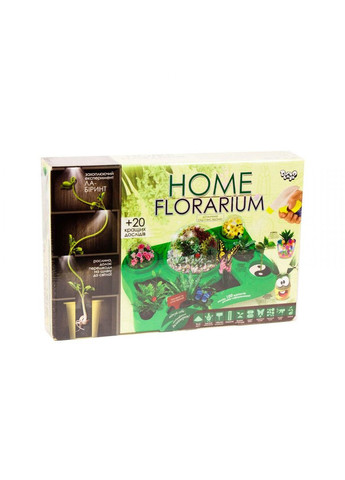 Набор для выращивания растений Home Florarium - это настоящий, миниатюрный ботанический сад у Вас дома. Оригинальная форма-контейнер предназначена для засеивания и посадки декоративных растений. Пошаговая инструкция поможет не только правильно посеять семена, но и расскажет, как провести подборку лучших опытов. Бонусом набора является "монстрик" "Grass Monsters Head". без упаковки: 34 x 9 x 23 см Кран производитель: Украина Материал: Комбинированный Комплектация: Контейнер с деталями, гидрогелевые шарики (30 г), "травяной монстирик", торфяные брикеты, волшебные бобы, семя арахис, петунья, укроп, газонная трава, амарант, бальзамин)