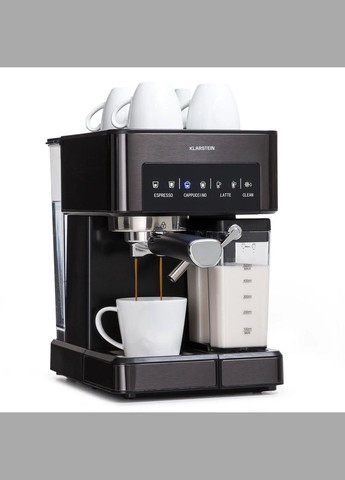 Кофеварка Arabica Comfort 1350W 20 бар 1.8л сенсорная панель управления Для страстных любителей кофе: наслаждайтесь отличным эспрессо, капучино и латте макиато одним нажатием кнопки с кофеваркой KLARSTEIN Arabica Comfort. Благодаря насадке для вспенивания из нержавеющей стали 90° и съемному резервуару для молока вы можете в любое время индивидуально регулировать производство молочной пены. Вы также можете заваривать молотый кофе или использовать практичную кофейную подушечку для каждого приготовления. Равномерная очистка очень проста благодаря съемному резервуару для воды объемом 1,8 литра и решетке для капель, которую можно мыть. Главные особенности: Характеристики: Давление насоса: 20 бар Съемный резервуар для воды: 1,8 л Мощность: 1350 Вт Пенная насадка из нержавеющей стали 90° Подходит для молотого кофе и подушечек съемный резервуар для молока Сенсорная панель управления чашек Питание: 220-240 В~ | 50/60 Гц Размеры: Общие размеры (с портафильтром): примерно 21 x 31 x 40 см (ШxВxГ) Размеры (без портафильтра): примерно 21 x 31 x 29 см (ШxВxГ)