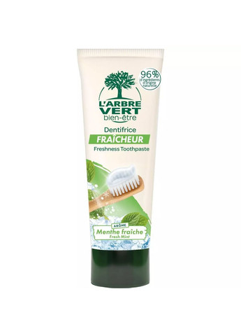 Зубная паста L'Arbre Vert (Л'Арбре Верт) Свежая мята обеспечит эффективный уход за вашими зубами и свежее дыхание. Ее освежающая формула эффективно борется с бактериями, загрязнением и неприятным запахом, оставляя вас с чистыми, здоровыми зубами и свежим дыханием. Основные преимущества: аромат свежей мяты приятно освежает ваше дыхание, придавая вам уверенность в течение всего дня. формула пасты имеет мягкую консистенцию, позволяющую бережно очищать зубы, не повреждая эмаль и ясную изготовленная из натуральных ингредиентов, зубная паста не содержит вредных веществ, таких как парабены или SLS (натриевый лауретсульфат) упаковка изготовлена из экологически чистых материалов, что уменьшает негативное влияние на окружающую среду Способ применения: намочите зубную щетку теплой водой. Нанесите на нее маленькое количество зубной пасты. Плотно почистите зубы и десну в течение 2-3 минут, двигая щеткой вверх-вниз и в круговых движениях. Затем тщательно прополоскать рот водой. Повторяйте процедуру дважды в день, утром и вечером для обеспечения максимального эффекта и ухода за зубами. Характеристики Объем: 75 мл Производитель: L'Arbre Vert, Франция.