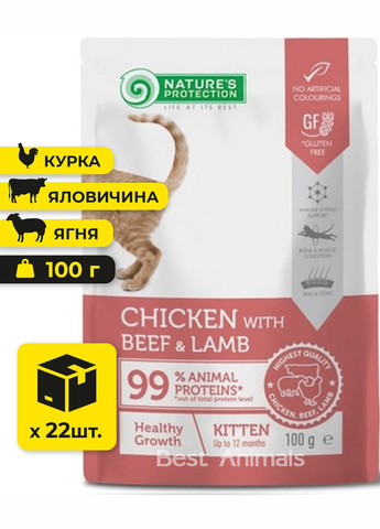 Nature's Protection Lifestyle Grain Free с лососем для котят – это полнорационный, сбалансированный сухой корм супер премиум класса с высококачественными источниками белка и сырьем. Этот корм специально разработан для растущих котят, чтобы помочь им преодолеть сложный период отлучения от материнского молока в оптимальном состоянии и обеспечить хороший старт в жизни. Он дополнен инновационными ингредиентами, не содержащими глютена и обеспечивающими идеальную производительность для хорошего самочувствия любимца. Полноценный состав этого сухого корма подходит не только для растущих котят, но и для беременных и кормящих кошек, обеспечивая их необходимой энергией для роста и здоровья. Основным источником белка в этом полнорационном сухом корме является легко усваивающийся лосось, богатый Омега-3 жирными кислотами и считающийся гипоаллергенным источником белка. Сбалансированный состав этого сухого корма обогащен MicroZeoGen, клиноптилолитом вулканического происхождения, помогающим выводить токсины из организма животного, обеспечивая эффективное усвоение питательных веществ, витаминов и минералов. Состав также обогащен жирными кислотами Омега-3 и Омега-6 для укрепления иммунитета, поддержания надлежащей работы мозга и сердечно-сосудистой системы, а также уменьшения воспалительных процессов. Поскольку состав не содержит зерновых ингредиентов, это может помочь снизить риск возникновения аллергии у кошек с чувствительной пищеварительной системой. Лосось как источник белка Гипоаллергенный источник белка Легко усваивается Богат необходимыми витаминами и минералами Улучшает состояние кожи и шерсти Очень вкусный Источник Омега-3 жирных кислот Ингредиенты высочайшего качества Тщательно отобраны ветеринарными и диетологическими экспертами на основе истинных потребностей вашего любимца. Богат Омега-3 и Омега-6 Незаменимые жирные кислоты особенно ценны для укрепления иммунной системы, поддержки правильной работы мозга и сердечно-сосудистой системы, а также уменьшения воспалительных процессов. Блестящая шерсть Омега-3 и Омега-6 жирные кислоты вместе с цинком и витаминами группы В помогают поддерживать отличное состояние кожи и густую и блестящую шерсть. Здоровый рост Формула богата животными белками, которые обеспечивают энергией, необходимой для здорового развития и выносливости растущих котов. Преимущества продукта: Гипоаллергенный Здоровый рост и развитие Подходит для беременных и лактирующих кошек Ингредиенты высочайшего качества Сбалансированное питание Природные антиоксиданты Без зерновых Основные ингредиенты: Источник белка – лосось: гипоаллергенный и легкоусвояемый MicroZeoGen: клиноптилолит вулканического происхождения из природы для детоксикации организма, усвоения питательных веществ и иммунной системы Омега-3 и Омега-6 жирные кислоты: для укрепления иммунной системы растущих котят, а также беременных и лактирующих кошек Экстракт юкки: обладает противовоспалительными и антиоксидантными свойствами Корм не содержит: Искусственных красителей и ароматизаторов Консервантов Произведено в Европейском Союзе. Состав: лосось 41% (сушеный и измельченный), сушеный картофель, птичьи жиры, гороховый белок, горох, жом сахарной свеклы, пивные дрожжи, семена льнa, масло лосося, динамически микронизированный клиноптилолит (1%), цел