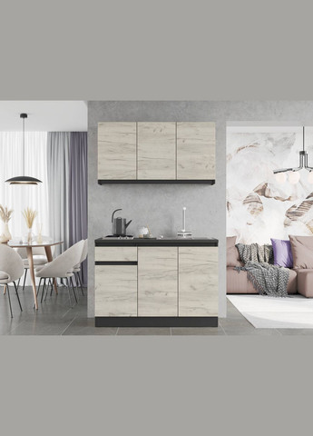 Кухня модульная Эверест Оптима набор №5 Графит 1,2 м Товар производится на заказ! Срок изготовления от 2 до 3 недель. Кухонный гарнитур серии Оптима 1,2 м от мебельной фабрики Эверест – это идеальное решение для организации пространства в современной кухне. Дизайн набора отличается простыми четкими линиями и функциональными решениями: просторные рабочие поверхности, тумба под мойку и гибкая планировка расположения тумб и навесных шкафов. Мебель изготовлена из ламинированной ДСП, которая обладает высокой прочностью и стойкостью к воздействию воды и пара. Размеры (ШxГxВ): 120см x 60см x 213см Характеристики: Цвет фасада верхних тумбочек: Графит Цвет фасада нижних тумбочек: Графит Столешница: Дуб сонома 28 мм Кромка на столешницу: в цвет столешницы Цокольная планка: Дуб сонома7 шкафов: 28 см Высота нижних шкафов: 72 см (без учета столешницы) Глубина нижних шкафов: 45 см Направляющие: Телескопические (DC) Ручки: металлические черные 12,8 см Ножки регулируемые пластиковые, черные 10 см Форма кухни: прямая Материалы: каркас и фасады из ЛДСП . Фасады шкафа можно менять местами для открывания дверей в разные стороны. Кухня укомплектована мебельной фурнитурой: ручками и набором креплений для сборки. В комплект не входят: мойка, бытовая техника, смеситель и аксессуары. Мы рады предложить вам отличную возможность обновить интерьер вашей кухни с помощью готовых кухонных гарнитуров от известной мебельной фабрики Эверест. В нашем ассортименте представлены стильные, современные и компактные модели, которые впишутся в любой кухонный дизайн. Наши опытные менеджеры всегда готовы помочь вам с выбором размеров, цветовой гаммы и дизайна для создания идеального пространства. При покупке кухонные гарнитуры у нас вы можете быть уверены в высоком качестве продукции и доступной цене. Не упустите шанс превратить вашу кухню в настоящий шедевр дизайна!