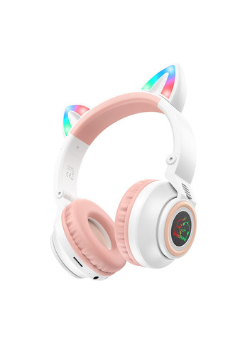 Блютуз стерео гарнитура Borofone BO18 Cat Ear – это яркое сочетание стильного дизайна с кошачьими ушками и современных технологий, которое порадует как подростков, так и взрослых. Благодаря беспроводному подключению, качественному звуку и мягким амбушюрам она не только выделяется снаружи, но и обеспечивает комфортное прослушивание музыки или совершение звонков в течение всего дня. Особенности и преимущества блютуз стерео гарнитуры Borofone BO18 Cat Ear: • Оригинальный дизайн с красочной RGB-подсветкой кошачьих ушек на голове и стилизованного логотипа на ушных элементах. • Оптимальные размеры (204×156×80мм) и небольшой вес (195г) – создает минимальную нагрузку при длительном ношении. • Качественные электронные компоненты и надежная сборка корпусных деталей из устойчивого к погрузке ABS-пластика. • Мягкие амбушюры, обтянутые качественным кожзамом и удобно прилегающие к ушам, защищая от окружающего шума. • Регулируемое обнажение с эргономичной накладкой для обеспечения дополнительного комфорта с подстройкой под размер головы. • Практическая складная конструкция ушных элементов для удобного и безопасного хранения или переноски. • 40-миллиметровые динамики, воспроизводящие насыщенный звук в Hi-Fi качестве и широком диапазоне частот. • Модуль Bluetooth V5.0 (чип JL AC6925F), обеспечивающий стабильное беспроводное соединение с совместимыми устройствами. • Чувствительный микрофон, удобно расположенные кнопки и слот для карты памяти TF объемом до 32GB. • До 7 часов работы в активном режиме с включенной подсветкой от встроенного аккумулятора емкостью 400mAh. • Разъем Micro-USB для зарядки и стандартный разъем AUX 3.5мм для подключения к источнику звука. Полноразмерные наушники BO18 Cat Ear способны привлечь внимание своим дизайном и при этом оправдать ожидания по звуку и удобству, оставаясь надежным спутником для музыки и звонков.