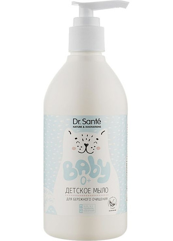 Самая приятная процедура – купание. Очищает не только тело, но и душу. А купание малыша – совершенно потрясающее удовольствие и для малышки, и для родителей. Итак, вам нужно выкупать сынишку или дочь и необходимо выбрать самое лучшее мыло, которое не повредит детскому здоровью, не вызовет аллергии и не пересушит кожи? Тогда знакомьтесь с ассортиментом украинской косметической марки Dr. Sante Baby. Детское жидкое мыло бережно очищает, не пересушивая детскую кожу. Изготовлено на основе компонента растительного происхождения, производного яблочного сока. В состав мыла входят молочные протеины, смягчающие кожу, обеспечивающие ей защиту от сухости. Естественную мягкость и нежность кожного покрова сохраняет оливковое масло. Детское мыло не содержит парабенов, красителей, SLS, SLES. Для удобства и экономии использования мыла флакончик оснащен удобным дозатором. Нанести на влажную кожу, помассировать, смыть водой.