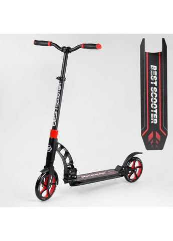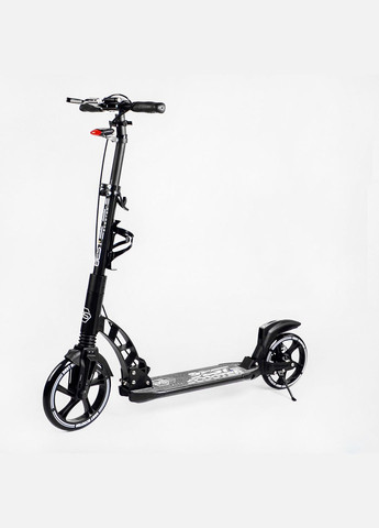 Двухколесный самокат Best Scooter колеса PU, фонарик, 2 амортизатора, складной, дисковый тормоз. Black (114291) Двухколесный самокат от “Best Scooter” с дисковым тормозом - станет отличным подарком, как взрослому, так и ребенку! Модель имеет металлическую прочную основу с двумя амортизационными блоками. Два больших колеса диаметром 230 мм и 200 мм изготовлены из полиуретана и отличаются повышенной износоустойчивостью. Торможение самоката производится двумя способами: тормозной рукояткой на руле, которая сжимает колодки дискового тормоза на заднем колесе, или же ножным нажатием на крыло заднего колеса. Руль регулируется в 3х положениях, благодаря этому Вы с легкостью подберете комфортную высоту для себя или ребенка. Также на руле установлен специальный зажим, который крепко фиксирует ручки и убирает дребезжание. Мягкие резиновые грипсы обеспечат невероятно комфортное и уверенное управление, так как руки ребенка не соскользнут с основания. Самокат имеет удобную систему складывания, его удобно хранить и транспортировать. Достаточно нажать ногой на педаль у основания руля и сложить самокат до щелчка. Представленная модель самоката производится на фабриках в соответствии с европейским критерием на качество и безопасность EN 71. Данный сертификат устанавливает ряд требований, предотвращающих основные риски: физические и механические, воспламеняемость, химические, электрические, гигиенические риски. Особенности: дисковый и ножной тормоз; 2 амортизационных блока - передний и задний; крылья над колесами; легкая система складывания; удобные резиновые грипсы; зажим руля; флягодержатель; светодиодный фонарик; наклейка на деке - наждак. Характеристики: Тип: Двухколесный самокат Возраст: 3+ Рост: 1.45 см до 1.95 см Цвет: Черный Полиуретановые колеса Переднее колесо: 230 мм, заднее: 200 мм Высота руля регулируется от 93 см до 103 см, с фиксацией в 3х положениях Ширина руля: 38 см Размер деки: 49 х 14 см Высота деки от пола: 10 см Максимальная нагрузка: 100 кг Упаковка: Коробка