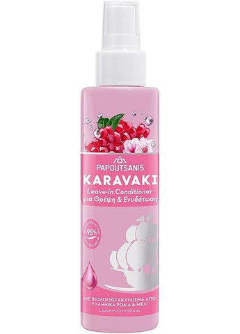 Несмываемый кондиционер для волос с экстрактами греческого граната и меда от Papoutsanis Karavaki создан специально для ухода за сухими поврежденными прядями. Его натуральная формула интенсивно питает локоны, восстанавливает их структуру. Уже после первого использования пряди ощущаются более гладкими и шелковистыми. Волосы становятся мягкими и легко распутываются. Особенности Papoutsanis Karavaki Leave-in Conditioner: - 95% компонентов натурального происхождения; - кератин кондиционирует волосы, делает его гладкими и шелковистыми; - масло ши смягчает сухие пряди, предотвращает их ломкость; - миндальное молоко способствует росту и укреплению структуры; защищает пряди от отрицательного внешнего воздействия; - мед интенсивно питает волосы протеинами, аминокислотами, витаминами и другими целебными микроэлементами.