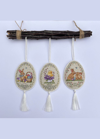 Набор для создания своими руками декоративной вышитой текстильной игрушки-подвески (пинкип) в виде писанки с вышивкой крестиком изображения кроликов, цыпленка. Комплект из 3-х подвесок. Тематика: Животные Материал: Аида 16 / Мулине ДМС Размер: 7х10.5 см Упаковка: 1 шт. Количество цветов: 27 Производитель: ВДВ (Украина) Цена указана за 1 набор. Комплектация: - Канва Аида №16; - Мулине DMC на органайзере или на пластиковых бобинках; - Игла Pony (Индия); - Холлофайбер; - Шнур декоративный; - Ч/б счётная схема; - Инструкция. Набор для изготовления декоративной вышитой игрушки-подвески — это готовое решение для создания оригинального текстильного декора своими руками. В комплекте есть все необходимые материалы: ткань, нитки мулине DMC, игла для вышивания, холлофайбер и декоративный шнур для подвешивания, а также счётная схема и инструкция по изготовлению игрушки. Такой набор идеально подходит для творчества или в качестве подарка для рукодельницы. Процесс создания игрушки развивает навыки ручной вышивки и вдохновляет на креативность. Готовое изделие станет стильным элементом декора или душевным сувениром, сделанным с любовью.