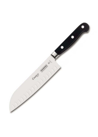 Нож универсальный CENTURY Материал лезвия: нержавеющая сталь Материал рукоятки: поликарбонат Режущая кромка ножа: гладкая Цвет: черный Назначение ножа: поварской Универсальный нож Tramontina Century 24007/007 на практике используется чаще всегоДаже при отсутствии специальных инструментов для каких-либо работ повара и хозяйки отлично с ними справляютсяНарезать овощи или мясо, сыры или колбасы, аккуратно отрезать хлеб всё это удобно делать специальными ножамиНо если их нет, на помощь приходит нож универсальныйНожи серии CENTURY относятся к профессиональным высококачественным ножам, благодаря особому подбору материалов и технологии изготовленияCENTURY является высококлассной высокопроизводительной линией кухонных ножей созданной специально для шеф-поваров и гурмановГлавной особенностью этих ножей является очень острая заточка, что позволяет нарезать продукты чрезвычайно тонкими ломтиками даже для самых сложных и виртуозных рецептовЭто достигается благодаря кованому клинку: ковка уплотняет кристаллическую решетку металла и делает режущую кромку ножа более долговечнойИдеально эргономичная ручка из поликарбоната и стекловолокна является продолжением клинка и обеспечивает комфорт и безопасность при резкеОсобенности: Материал лезвия: Кованная сталь европейского стандарта DIN 1.4110 Толщина лезвия: 2,5 мм Закалку до твердости 56 единиц по шкале Роквелла с криообработкой Матуриал рукоятки: поликарбонат Можно мыть в посудомоечной машине Бренд Tramontina основан в Бразилии в 1911 году10 фабрик, которые производят более 18 000 наименованийОдин из лидеров мирового рынка по производству ножей, столовых и кухонных принадлежностей, посуды для приготовления пищи, инструментов для сельского хозяйства, строительства и садаTramontina производит кухонную утварь только из наилучшей 18/10 нержавеющей стали, отполированной до зеркального блеска, которая со временем не тускнеет и не темнеетКаждый элемент разрабатывается с условием, чтобы он смог удовлетворить вкус, как обычного домовладельца, так и наиболее требовательного профессионального повараПриносит удовольствие от процесса приготовления пищи и от того, как это объединяет людей вовлеченных в этот процесс