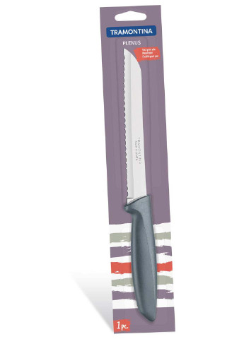 Нож PLENUS Материал лезвия: нержавеющая сталь Материал рукоятки: полипропилен Режущая кромка ножа: зубчатая Цвет: серый Назначение ножа: для хлеба Бренд Tramontina основан в Бразилии в 1911 году10 фабрик, которые производят более 18 000 наименованийОдин из лидеров мирового рынка по производству ножей, столовых и кухонных принадлежностей, посуды для приготовления пищи, инструментов для сельского хозяйства, строительства и садаTramontina производит кухонную утварь только из наилучшей 18/10 нержавеющей стали, отполированной до зеркального блеска, которая со временем не тускнеет и не темнеетКаждый элемент разрабатывается с условием, чтобы он смог удовлетворить вкус, как обычного домовладельца, так и наиболее требовательного профессионального повараПриносит удовольствие от процесса приготовления пищи и от того, как это объединяет людей вовлеченных в этот процесс