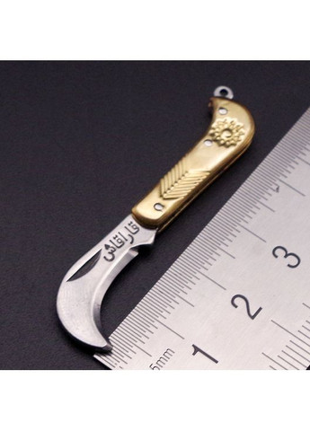 Уникальный мини складной нож с изогнутым лезвием — стильный аксессуар с характером. Благодаря крючковообразной форме лезвия, он не только эффектно смотрится, но и подходит для мелких точных работ. ✨ Описание товара: Тип: складной мини-нож Общая длина: 5 см Длина лезвия: 2 см Вес: 5 г Материал лезвия: нержавеющая сталь Материал рукоятки: металл с золотистым покрытием, гравировка Цвет: золотой Дополнительно: кольцо для использования в качестве брелока ⚙️ Преимущества: изогнутые лезвие для удобства в мелких бытовых задачах; легкий и компактный – всегда под рукой; гравированая рукоятка с узором добавляет эстетики; идеальный подарок для коллекционеров или любителей EDC-аксессуаров.