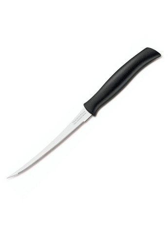 Tramontina — бразильская корпорация с вековой историей, мировой лидер в производстве товаров для кухни, дома, сада. Ассортимент Tramontina включает широчайший спектр продукции, начиная от современной кухонной утвари — ножей и столовых приборов, и заканчивая посудой с тефлоновым покрытием. Основанная в 1911 году Валентином Трамонтина, компания начиналась с небольшого кузнечного магазина в Рио Гранде. За сто лет усилиями членов семьи основателя из маленького кузнечного цеха компания превратилась в современную корпорацию, насчитывающую 10 крупных фабрик и выпускающую 18000 видов продукции, представленную в 120 странах мира. Благодаря инновационным разработкам, применению эко-технологий и современному дизайну, продукция компании Tramontina завоевывает все большую популярность. Под брендом Tramontina выпускаются универсальные ножи, профессиональные с сертификатом NSF (с антибактериальной защитой Microban), спортивные и раскладные ножи, а также мачете и вертела — качественные и стильные, практически с неограниченным сроком эксплуатации. Ножи Tramontina зарекомендовали себя отличным качеством, прочностью, широким ассортиментном и относительно низкой ценой. Кухонный нож Tramontina Athus для томатов с лезвием длиной 12.7 см используется для нарезки мягких или сочных овощей и фруктов. Благодаря специальной заточке лезвия легко и удобно нарезать овощи, фрукты, например, помидор, огурец, лук и т.д., на тонкие ломтики или кубики. Лезвие изготовлено из нержавеющей стали марки AISI 420, не тускнеет, обладает высокой пластичностью, очень долго остается острым, устойчиво к коррозии и высоким температурам. Лезвие украшено гравировкой логотипа Tramontina. Эргономичная противоскользящая рукоять, выполненная из полипропиленового материала с антибактериальным покрытием, приятна на ощупь. Нож лёгкий и удобно лежит в руке. Идеально подойдет для ежедневного использования как на обычной, так и на профессиональной кухне кафе, баров, ресторанов. Нож Tramontina Athus можно мыть в посудомоечной машине. Особенности: Специальная заточка для нарезки мягких или сочных овощей и фруктов V-образная форма лезвия для идеального разреза Изготовлен из нержавеющей стали марки AISI 420, толщина ~1.2-2.2 мм Лезвие не тускнеет, очень долго остается острым Устойчиво к коррозии и высоким температурам Эргономичная противоскользящая рукоять с антибактериальным покрытием Удобно лежит в руке Современный дизайн Можно мыть в посудомоечной машине