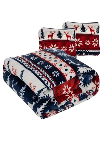 Такой комплект из пледа с подушками послужит стильным дополнением гостиной или спальни, обеспечивая комфорт и тепло вам и вашим близким, а также станет отличным подарком на любой праздник. Особенности: - наволочки в комплекте - материал большой плотности Характеристики: - плотность: 330 г/м² - размеры: 160 х 200 см - вес: 1,1 кг - вес в упаковке: 1,05 кг - машинная стирка: 30°C - узор: праздничный - переплетение: микрофибра - материал: дышащий полиэстер Комплектация: - плед - наволочки - подарочная лента на липучке