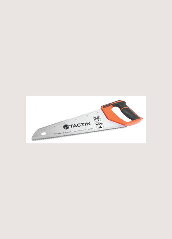 Ножовка для дерева 380мм 9TPI (265021) TC, INSKSKSSW380090MT0Количество зубов на дюйм (TPI) – 9. Артикул INSKSKSSW380090MT0 Модель (марка) серия TACTIX, 265021 Материал сталь SK-5 Для какого основания? для дерева Рабочая длина, мм 380 Шаг зубьев, мм 9TPI Стандарт (группа) INSKS Область применения для строительства, для окон и дверей, для кровельных работ, для сборки мебели, для фасадных работ Бренд TACTIX 0.625 кг Партия 6 шт Тип инструмента ножовка