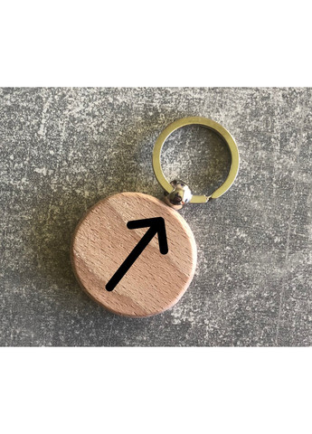 Круглый деревянный брелок диаметром 40 мм. с лазерной гравировкой руны Старшого футарк «АНУСУЗ»