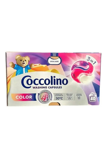 Капсулы для стирки Цветные вещи Coccolino Washing Capsules Color 3in1 Коколино Цвет 3в1 40шт, картонный бокс Новые капсулы для стирки светлой и белой одежды от Cocolino Color прекрасно устраняют загрязнения, сохраняют и заботятся о Вашей одежде. Итак, теперь Ваши цветные вещи будут выглядеть как новые гораздо дольше. Капсулы Coccolino с их нежным ароматом не только отлично отстирают одежду, но и обеспечат фантастический запах. Капсулы очень просты в использовании, эффективны и удобны. Удобная дозировка помогает не повредить ткани. И благодаря своей новейшей технологии Вы можете наслаждаться прекрасными ароматами весь день!