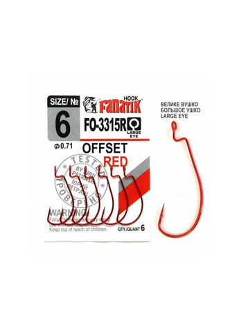 Не уступая лучшим японским офсетникам в качестве исполнения (сделанный в Корее из высокоуглеродистой стали VHI-Carbon, крючок Fanatik FO-3315 обладает отличной прочностью и упругостью, он всегда остается идеально острым и жестким благодаря правильной термообработке и двойной химической заточке), этот крючок в работе с шарнирными грузами благодаря своему большому круглому ушку. Это редкость: подавляющее большинство офсетников предназначено для техасских и поводковых оснасток, эти крючки имеют небольшое ушко, которое заклинивается на арматуру шарнирных грузил. Крючок от Fanatik работает лучше: легко складывается при забрасывании, монтаж с таким офсетом улетает заметно дальше, а при проводке приманка на нем всегда двигается свободно и естественно. Средняя глубина поддева позволяет монтировать на этом крючке силиконовые приманки любого типа. Форма жала выбрана идеально, оно «прилипает» к спинке приманки, избегая контакта с преградой. Острые крючки направлены точно на ушко – поэтому эффективность подсечки всегда стопроцентная. «Ступенька», удерживающая главную часть приманки, выражена очень четко, и фиксирует силикон превосходно.