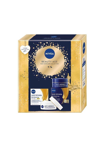 Набор состоит из: Дневной крем против морщин NIVEA + ревитализация 55+ 50 мл Ночной крем против морщин NIVEA + ревитализация 55+ 50 мл Крем для лица NIVEA против морщин + ревитализация 55+ – это идеальный выбор для ухода за кожей. Крем обеспечивает интенсивное увлажнение, питает кожу, улучшая ее текстуру и тонус. Он активно уменьшает видимость морщинок, делая кожу более гладкой, молодой и сияющей. Преимущества: Заметно уменьшает морщинки. Повышает тонус кожи. Помогает предотвратить появление новых морщин. Защищает от УФ излучения. Для всех типов кожи. Чтобы обеспечить коже полноценный уход и защиту, необходимо заботиться о ней круглые сутки, обеспечивая необходимое питание и увлажнение как днем, так и ночью. Ночной крем для лица против морщин + ревитализация 55+ от NIVEA – это косметическое средство, специально разработанное для женщин в возрасте от 55 лет. В составе средства присутствует масло авокадо, кальций и пантенол, благотворно влияющие на кожный покров, делая его более упругим и эластичным. Крем обладает легкой консистенцией, благодаря чему быстро поглощается и не оставляет после себя липкой «пленки». Преимущества: Заметно уменьшает морщинки. Повышает тонус кожи. Стимулирует естественный процесс обновления кожи во время сна. Для всех типов кожи. Интенсивно увлажняет кожу.