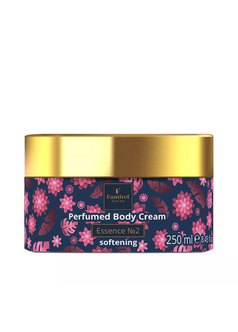 Famirel Парфюмированный крем для тела Softening Essence № 2 - элегантный цветочный аромат, создан специально для женщин. В его сердце лежит утонченный букет из розы центифолии, пиона, ландыша и ириса, которые вместе формируют глубокий и чувственный аромат. Композиция обогащена базовыми нотами бобов тонка, теплой ванили и мягкого мускуса, а также благородного сандалового дерева, добавляющего аромату насыщенности и древесной нотки. Крем идеально подходит для тех, кто предпочитает ароматы, которые искусно сочетают в себе цветочную легкость с теплой основой, делая кожу невероятно ароматной и неотразимо привлекательной. Парфюмированный крем для тела, насыщенный витамином Е и экстрактом алоэ вера, обеспечивает смягчение, питание и увлажнение кожи. Активные компоненты: масла граната, моркови, авокадо, ши, оливы, миндальное, Д-пантенол (провитамин В5), каприлик и глицерин - проникают глубоко в сухие участки кожи, а уникальное сочетание минералов Мертвого моря, витаминов и белков улучшает состояние кожи, придавая более здоровый и ухоженный вид. Увлажнение: каприлик, глицерин удерживают влагу, смягчают и кондиционируют кожу. Питание: масло авокадо питает, увлажняет и смягчает кожу, делает ее упругой и эластичной; масло ши активно питает, увлажняет, регенерирует и омолаживает; масло граната интенсивно питает, увлажняет, тонизирует и повышает защиту кожи, снимает воспаление; масло моркови питает, увлажняет, восстанавливает, укрепляет. Восстановление и защита: масло миндальное смягчает сухую кожу, делает ее упругой и эластичной, борется с мелкими морщинами; масло оливы - антиоксидант, усиливает защитные механизмы клеток, смягчает и увлажняет кожу, эффективно восстанавливает ее защитные функции; экстракты алоэ, витамин Е, Д-пантенол (провитамин В5) оказывают заживляющие, противовоспалительные, восстанавливающие, влагосберегающие и разглаживающие свойства, защита от УФ-лучей; соль Мертвого моря насыщает микроэлементами и минералами. Paraben free