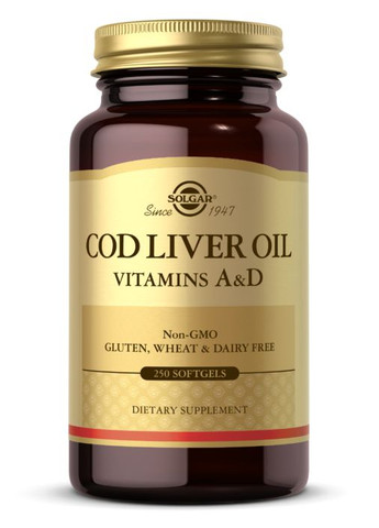 Масло из печени трески Solgar® содержит витамины A и D для поддержания здоровой иммунной системы, здоровья глаз и зрения, а также здоровья костей.* Масло, используемое в этой рецептуре, прошло молекулярную дистилляцию для удаления загрязнений. Рекомендации по применению В качестве диетической добавки для взрослых принимать по одной (1) капсуле трижды в день, желательно во время еды или согласно рекомендациям врача. Другие ингредиенты Жир из печени трески, желатин, глицерин (растительного происхождения), ретинилпальмитат, холекальциферол, смешанные токоферолы. Содержит рыбу (треску).