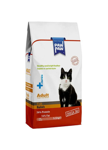 Сухой корм Pawpaw Премиум для взрослых кошек - питательный, вкусный и полноценный рацион для вашего питомца. Продукция торговой марки Pawpaw эконом класса с обновленным составом и улучшенным вкусом содержит все необходимые компоненты, соответствующие вкусу и потребностям наших преданных четвероногих друзей. Особенности продукта: сбалансированный рацион с богатым содержанием питательных компонентов; способствует здоровому пищеварению и обеспечивает организм энергией на весь день; содержит витамины и микроэлементы, необходимые для поддержания отличного здоровья и самочувствия животного; обладает превосходным вкусом и легко усваивается; рекомендован для взрослых кошек всех пород; изготавливается из натуральных и экологически чистых источников сырья с использованием передовых технологий. Рекомендации по кормлению: используйте таблицу для определения суточной нормы кормления кошек. Указанные нормы рекомендованы для поддержки питомцев в хорошей физической форме. Следите, чтобы у животных всегда была чистая, свежая питьевая вода. Состав товара: Сушеный животный белок и рыба (не менее 5% рыбы), рис, кукуруза, пшеница и ее производные, куриный жир, рыбий жир, пивные дрожжи, витамины и минералы. Гарантированные показатели: влажность 8,00%, сырой протеин 26,00%, сырой жир 14,00% сырая клетчатка 6,00%, сырая зола 9,00%, кальций 2,00%, фосфор 1,00%, натрий 0, 50%, омега 3 - 0,20 мг/кг, омега 6 - 0,4 мг/кг, витамин А 12500 м/кг, витамин D 1000 ME/ч,г витамин E 80 мг/кг, витамин С 120 мг/кг кг таурин - 1000 мг/кг