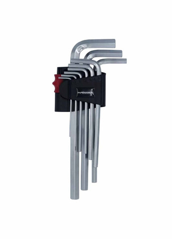 Набор Г-образных ключей HEX удлиненный 9 шт Haisser - состоит из 9 ключей с пластиковым органайзером. Каждый из них изготовлен из высокопрочной стали S2 с покрытием сатин, обладает очень высокой коррозионной стойкостью. Высокое качество инструмента обеспечивает максимальную прочность, стойкость к излому, длительный период эксплуатации. Применяется в работе с крепежными элементами с шестигранным шлицем. Широко используются при сборке мебели, ремонте автомобилей и других работах с элементами крепежа. Эргономическая Г – образная форма подходит для работы в труднодоступных местах или ограниченном пространстве.