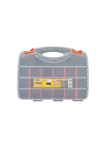 Органайзер Mastertool Органайзер MasterTool предназначен для хранения, транспортировки, переноса и удобного доступа к ручному инструменту. Помогает системно организовать хранение мелких деталей: крепежа, шайб, гаек и других мелочей. Простота в поиске необходимых деталей обеспечивается наличием нескольких секций. Функционален и находит применение во многих сферах деятельности: перенос индивидуальных инструментов, комплектация наборов инструментов и мелких деталей для домашнего мастера, обеспечение работников коммунальных служб комплектом оборудования, укладка мелких предметов на отдыхе – рыбалке, охоте, рукоделии; при комплектации необходимого набора инструментов и аксессуаров для автомобиля, мастерской, гаража или СТО, а также хранения самых разнообразных предметов в быту. Описание: • ударопрочный ABS пластик • 30 секций • удобная ручка • двухсторонний • для рыбалки, инструмента, дома, автомобиля Mastertool - один из самых известных украинских брендов инструмента. Деятельность компании стартовала с 1991 года и на сегодняшний момент в любом регионе Украины можно получить инструмент и оборудование для ремонтно-строительных работ этой марки. Отличительная положительная черта инструмента Mastertool - соотношение цена-качество. При достойном качестве материала изготовления и удобной комплектации, инструмент сопровождает небольшая стоимость.