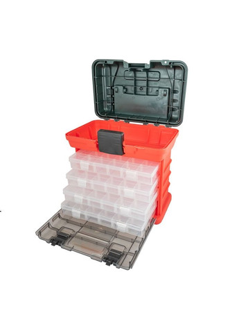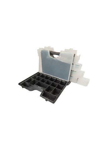 Органайзер Mastertool Органайзер MasterTool предназначен для хранения, транспортировки, переноса и удобного доступа к ручному инструменту. Помогает системно организовать хранение мелких деталей: крепежа, шайб, гаек и других мелочей. Простота в поиске необходимых деталей обеспечивается наличием нескольких секций. Функционален и находит применение во многих сферах деятельности: перенос индивидуальных инструментов, комплектация наборов инструментов и мелких деталей для домашнего мастера, обеспечение работников коммунальных служб комплектом оборудования, укладка мелких предметов на отдыхе – рыбалке, охоте, рукоделии; при комплектации необходимого набора инструментов и аксессуаров для автомобиля, мастерской, гаража или СТО, а также хранения самых разнообразных предметов в быту. Описание: • ударопрочный ABS пластик • 21 секция • для рыбалки, инструмента, дома, автомобиля • удобная ручка Mastertool - один из самых известных украинских брендов инструмента. Деятельность компании стартовала с 1991 года и на сегодняшний момент в любом регионе Украины можно получить инструмент и оборудование для ремонтно-строительных работ этой марки. Отличительная положительная черта инструмента Mastertool - соотношение цена-качество. При достойном качестве материала изготовления и удобной комплектации, инструмент сопровождает небольшая стоимость.