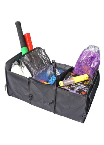 Это оргономичный органайзер для хранений и термосумка одновременно поможет поддерживать порядок в багажнике и перевозить продукты, сохраняя их температуру. Органайзер состоит из трех отсеков, они разделены надежными крепкими перегородками. Два отсека призначены для хранений разных мелочей. Средний отсек исполняет роль холодильника, который действует по принципу термо-сумки, что безупречно очень удобно. Ручки органайзера очень крепкие, но переносить в нем очень тяжелые вещи нельзя. Особенности: Этот органайзер для багажника подходит для всех транспортных средств (грузовиков, внедорожников, фургонов, джипов и легковых автомобилей). Отлично подходит для переноски и организации продуктов аварийных транспортных средств, игрушек, спортивного оборудования в вашем багажнике. Также хорошая корзина для хранения вещей дома. Подходит для семейных мероприятий, таких как пикник, кемпинг и рыбалка. Характеристики: - Материал: Синтетический нетканый материал, водоотталкивающий, - Размер в сложенном виде: 31*28*4 см, - Размер в разложенном виде: 60*28*31 см.