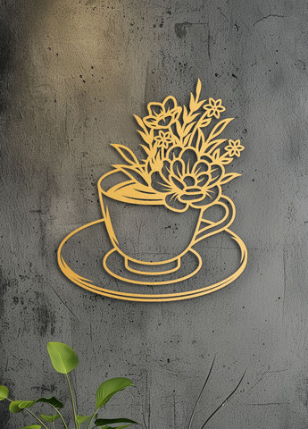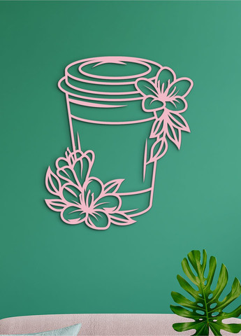 Современная картина на кухню, декоративное панно из дерева "Кофе с собой".