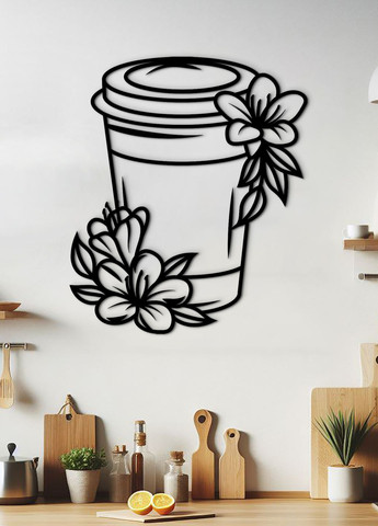 Декоративное панно из дерева, интерьерная картина на стену "Кофе с собой".