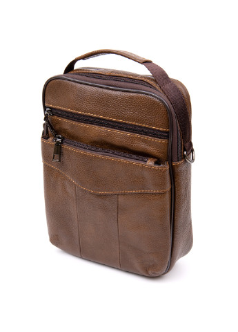 Цвет: коричневый; Материал: натуральная кожа; Размер (ШхВхГ, см): 20х25х5. Страна производитель: Китай. Бренд: Vintage. Особенности: - закрывается на молнию; - внутри: потайной карман на молнии; - два кармана на молнии (накладной и встроенный на лицевой стороне); - два кармана на молнии на тыльной стороне; - ручка для носки в руках; - съемный ремешок на плечо. Компактный мессенджер из натуральной кожи очень функциональный и имеет идеальный размер на каждый день. Аксессуар вы можете носить в руках или на плече. Внутри - качественная текстильная подкладка. Изделие блестит на солнце. Выполнено из мягкой кожи. В сумку поместятся все ваши необходимые личные вещи. Оригинальный коричневый цвет выделит вас из толпы. Мессенджер - идеальный подарок для любого мужчины.