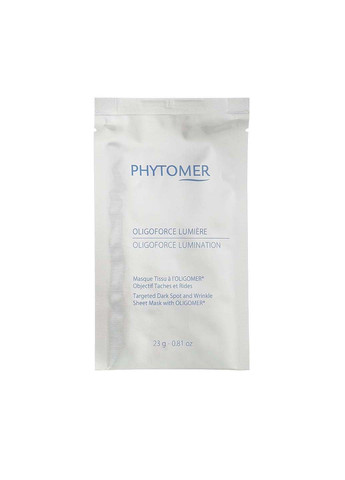 Бренд Phytomer получил свою заслуженную популярность среди производителей косметики за первенство в использовании в составах своей продукции морской грязи, глины и экстрактов водорослей. Естественное происхождение и грамотный подход в лабораториях обеспечивают безопасность готовых средств и высокую эффективность. Если вы хотите избавиться от первых возрастных изменений, морщин и пигментации, вам на помощь придет специальная тканевая маска. strong>Особенности Oligoforce Lumination Targeted Dark Spot and Wrinkle Sheet Mask бренда Phytomer: - тканевое лекало пропитано лосьоном на основе олигомеров (незаменимых компонентов морской воды и 104 элементов) - заметно разглаживает и осветляет кожу; - продолжает жизненный цикл клеток и улучшает тонус; - реминерализует и укрепляет кожный покров; - повышает устойчивость к воздействию внешних агрессивных факторов; - экстракт бурых водорослей (Undaria, Laminaria, Fucus) замедляет процессы старения и появление пигментации; - обладает антиоксидантным действием. Способ применения Наложить тканевую маску на лицо. Через 15 минут снять маску и слегка помассировать лицо в течение минуты до впитывания остатков продукта в кожу. Не смывать. Применять 2-3 раза в неделю.