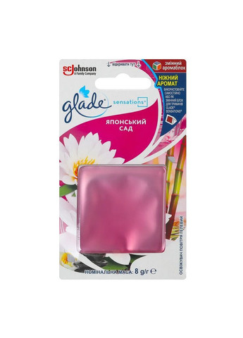 Освежитель воздуха Glade (Глейд) Японский сад - наполняет пространство утонченным ароматом, создавая атмосферу уюта, гармонии и спокойствия. Композиция с нотами сандалового дерева, жасмина и орхидеи погружает в ощущение умиротворения и природной свежести. Основные преимущества: мягкий, сбалансированный аромат для релакса и уюта подходит для дома, офиса или ванной комнаты долговременное действие — до 60 дней компактный формат легко вписывается в любой интерьер можно использовать с держателем Glade Sensations или отдельно Способ применения: Поместите аромаблок в держатель Glade Sensations или установите в удобное место. Замените, когда аромат ослабеет. Характеристики Объем: 8 г Производитель: Glade, Нидерланды.
