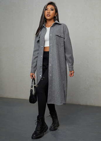 Цвет Серый / Сезонность Демисезон / Стиль Кэжуал / Декор Без декора / Материал верха Полиэстер / Бренд SHEIN / Узор Однотонный / Длина изделия Длинное / Длина рукава Длинный / Капюшон Без капюшона